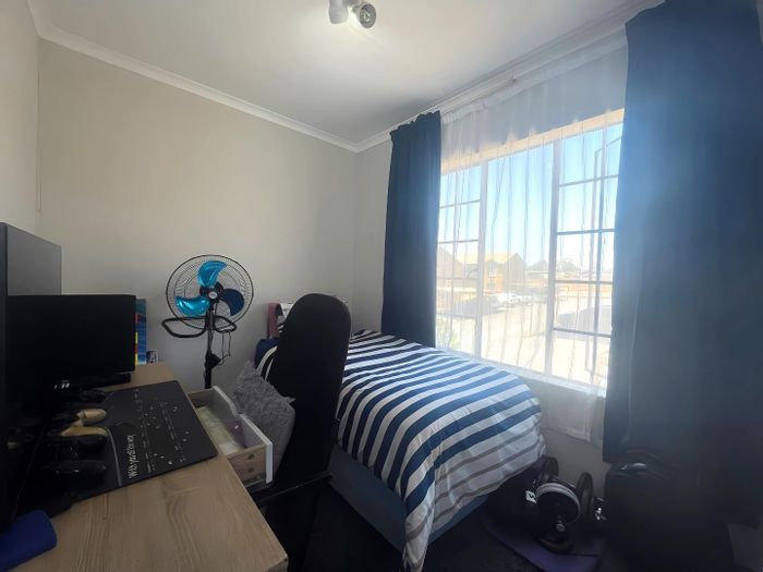 Family-friendly first-floor unit in the heart of Edleen, close to top schools, shopping and O.R. Tambo access — enclosed patio with built-in braai, three bedrooms, two bathrooms.